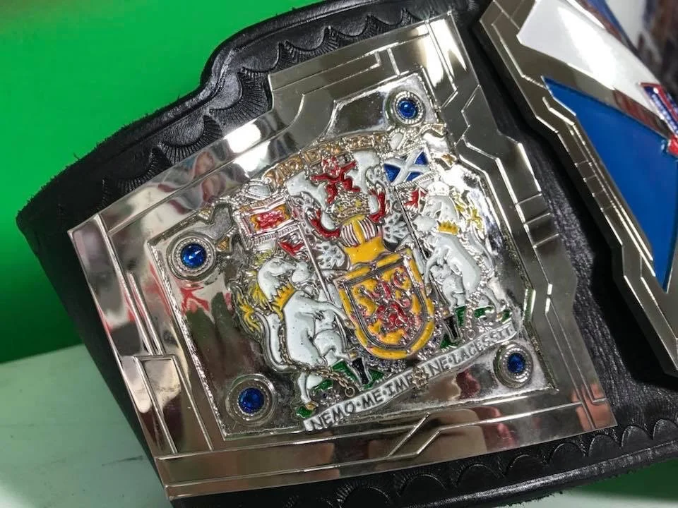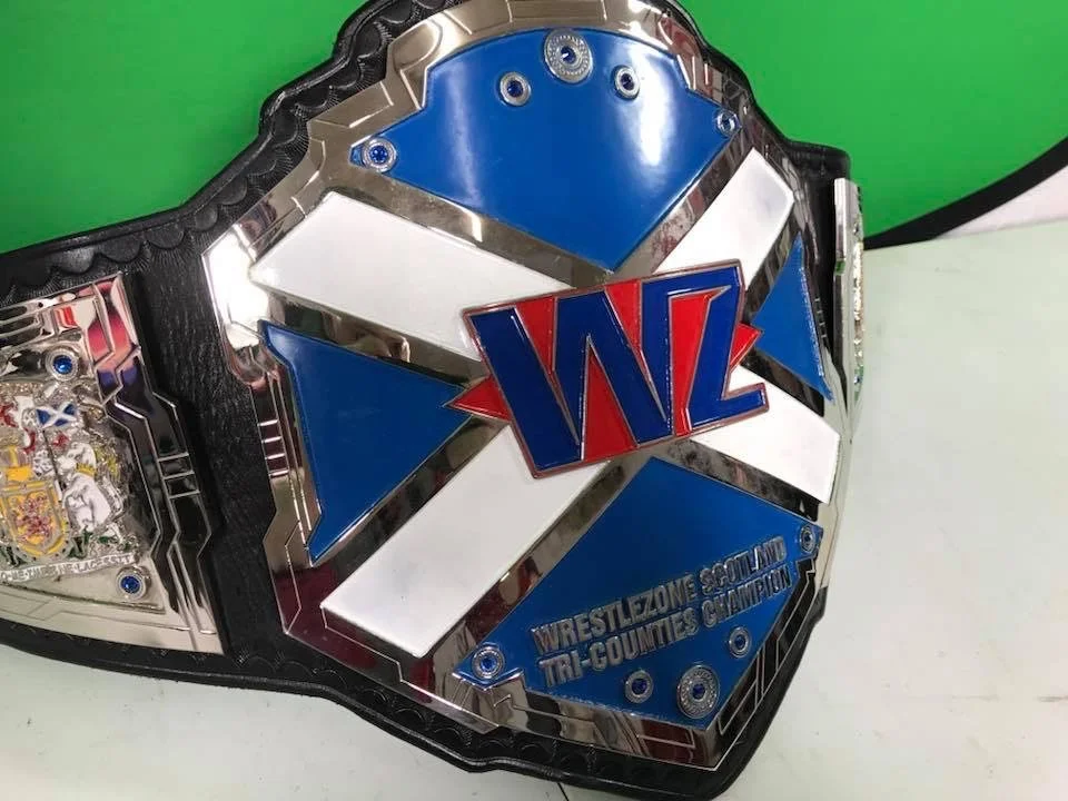 Wrestlezone Scotland Tri-Counties ChampionshipWrestlezone Scotland contacted Main Event Belts about creating a Mid-Card championship belt for their promotion. They advised they wanted something patriotic. I think we killed it here.